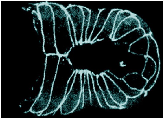 C. elegans embryo undergoing ventral enclosure expressing DLG-1::GFP [Mathias Koeppen].